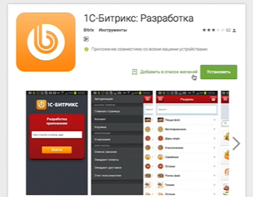 Смотреть как выглядет приложение мы будем установив специальное приложение для вашего смартфона из магазина приложений. Приложение называется 1с-битрикс: разработка При запуске необходимо добавить приложение введя адрес https://site.ru/appmobile/