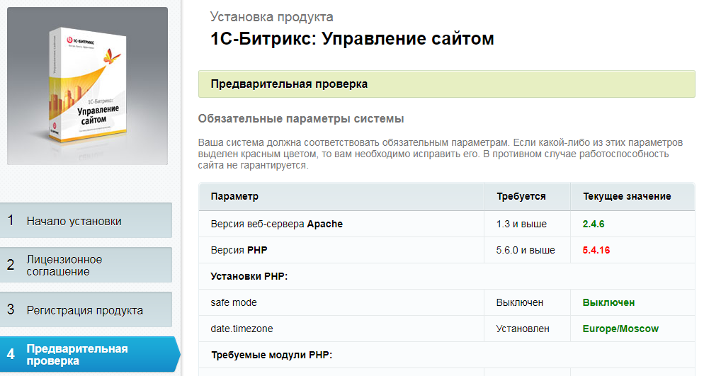 Ко мне прилетела очередная задачка на фрилансе по натяжке верстки на битрикс. Перед началом работы необходимо было установить чистый битрикс, в моем случае редакции стандарт. При установке, на шаге предварительной проверки обязательных параметров системы, битрикс не пропускал меня дальше т.к. требовал изменить версию php до стабильной версии 5.6